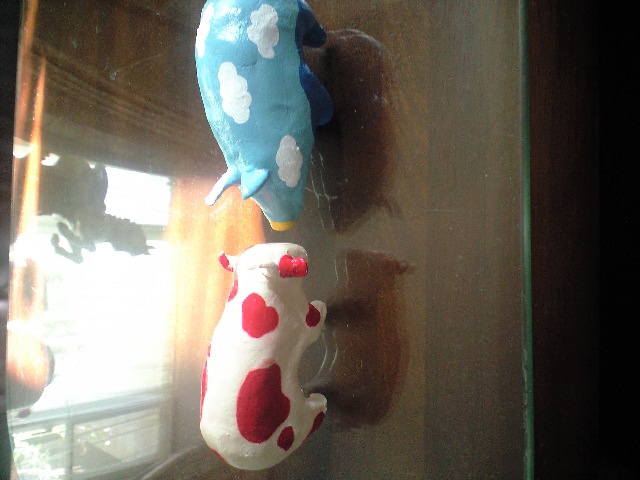 首を左90度かしげて見てください~。 牛とブタです。 見えますか? 見えませんか? そうですか…